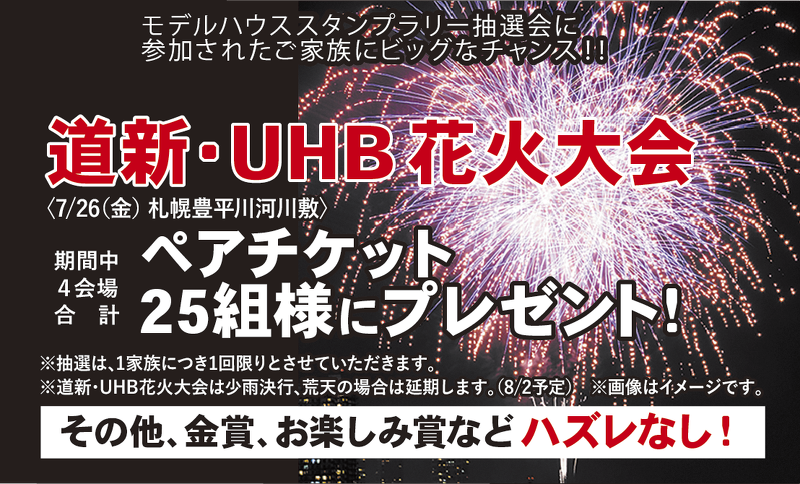 道新・UHB花火大会は少雨決行、荒天の場合は延期します。(8月2日予定)